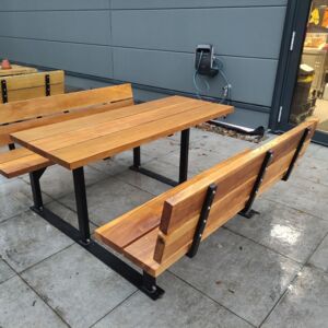 Sie bestehen aus durchgehenden Lamellen, und können als einfache Bank, oder auch mit Rückenlehne hergestellt werden.