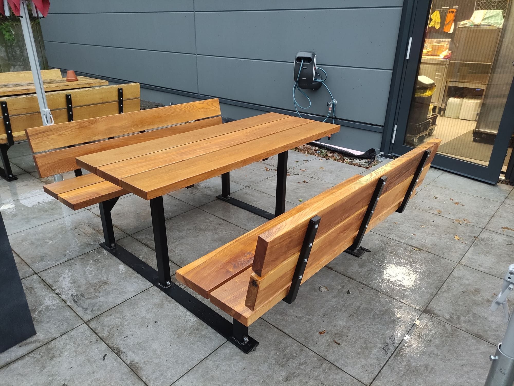 Die Sitzbänke werden in gleicher Weise gefertigt wie unsere Tischplatten.